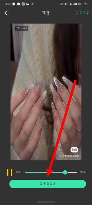 4、在導(dǎo)出頁面,點(diǎn)擊保存到相冊(cè),完成視頻剪輯操作。