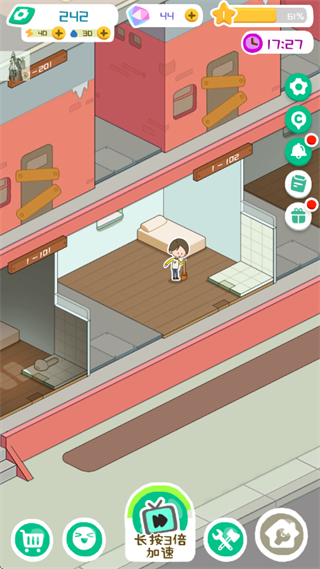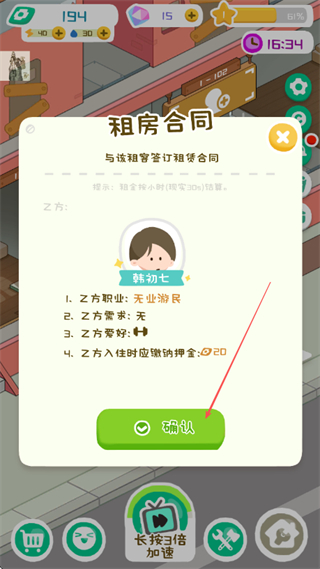 2、豎屏單指操作便捷省心,點擊即可完成房間查看、租客招募、家具升級等操作,視野清晰覆蓋全場景,通勤等碎片化時間也能輕松游玩。