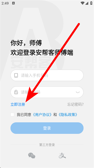 2、在登錄界面,點(diǎn)擊立即注冊,進(jìn)入注冊頁面。