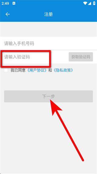 4、輸入驗(yàn)證碼,勾選協(xié)議后,點(diǎn)擊下一步,完成注冊流程。