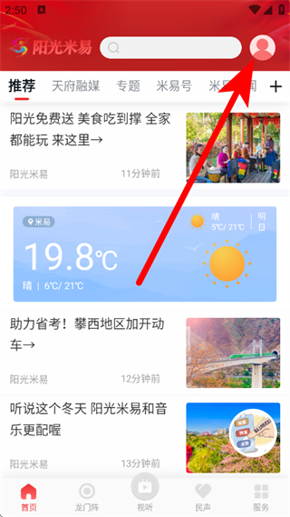 1、打開陽光米易,點(diǎn)擊右上角的個(gè)人圖標(biāo),進(jìn)入個(gè)人界面。