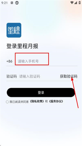 2、在手機(jī)驗(yàn)證登錄頁(yè)面填寫手機(jī)號(hào),勾選協(xié)議后,點(diǎn)擊獲取驗(yàn)證碼。