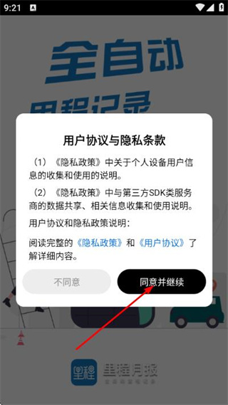 1、在使用協(xié)議隱私政策彈窗中點(diǎn)擊同意并繼續(xù)按鈕,進(jìn)入登錄頁(yè)面。
