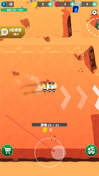 2、進入游戲后,通過界面操控按鈕控制火星漫游車移動,同時關(guān)注血量狀態(tài),需收集貨物以達成目標要求。