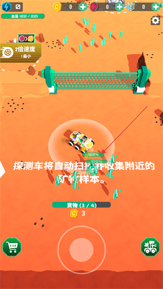 3、在火星場景中,探測車會自動掃描并收集附近的礦物樣本,持續(xù)收集可推進進度,逐步完成貨物收集的任務(wù)。