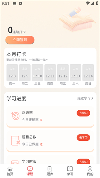 支持隨時隨地碎片化學習,適配通勤、休息等零散時間,無需固定場景與時段,操作流程簡潔直觀,刷題、聽課、學考點一鍵直達,讓備考融入日常,省時省力。