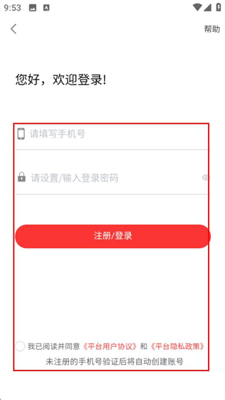 3、在登錄頁面,填寫信息并勾選協(xié)議后,點擊注冊完成登錄操作。