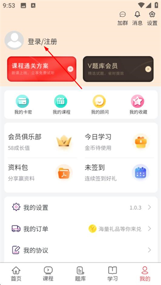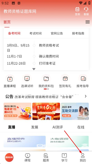 1、在教師資格證題庫網(wǎng)首頁,點擊底部的我的選項,進入個人中心頁面。