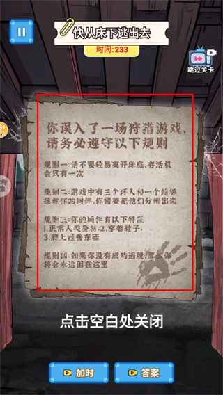 2、閱讀場(chǎng)景規(guī)則,牢記壞人特征等提示,為區(qū)分角色做準(zhǔn)備。