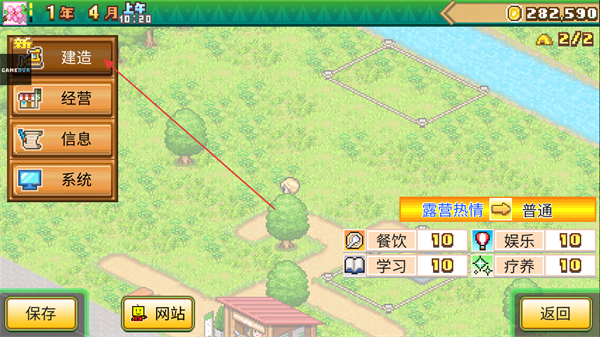 從搭建基礎(chǔ)營(yíng)地開(kāi)始,通過(guò)升級(jí)設(shè)施、優(yōu)化環(huán)境吸引顧客,用賺取的金幣購(gòu)買(mǎi)周邊土地,擴(kuò)大經(jīng)營(yíng)版圖,構(gòu)建從單一營(yíng)地到大型露營(yíng)區(qū)的完整發(fā)展路徑。