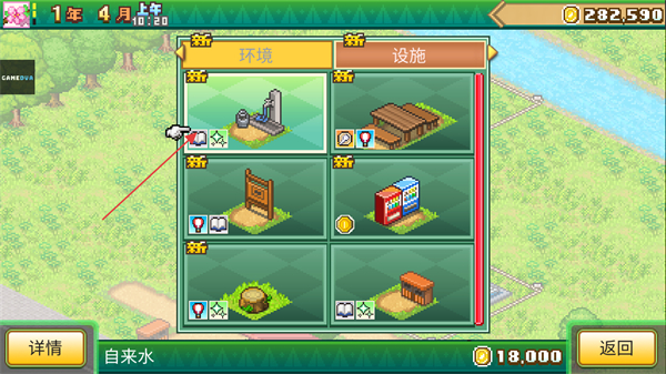 2、選擇環(huán)境分類(lèi)中的自來(lái)水設(shè)施,消耗18000金幣。