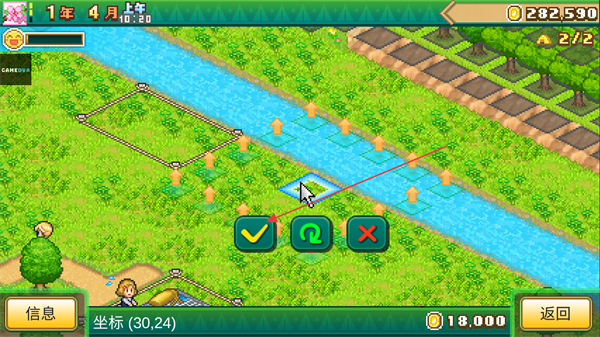 3、在地圖的河流附近坐標(biāo)30,24放置自來(lái)水設(shè)施,點(diǎn)擊對(duì)勾確認(rèn)位置。