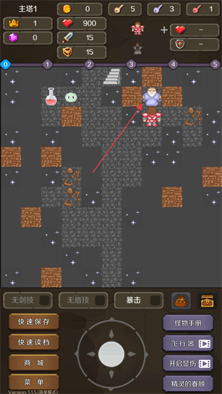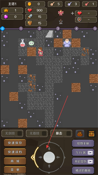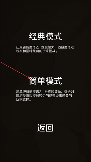 1、選擇模式時,經(jīng)典模式還原新新魔塔2難度大適合老玩家,簡單模式難度低適合新手,選對應模式即可進入游戲。