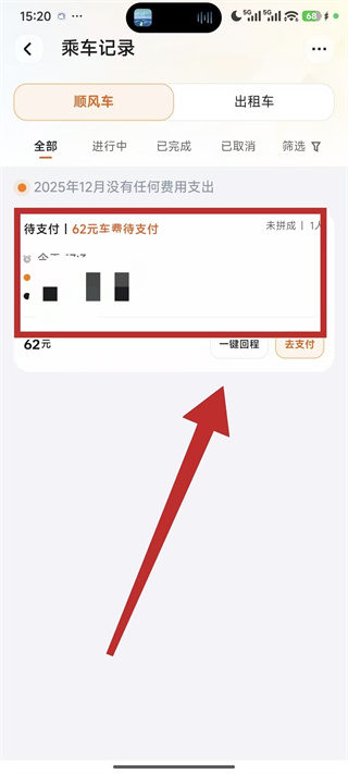 3、在乘車記錄頁面,找到要取消的行程訂單,點擊該訂單的頁面。