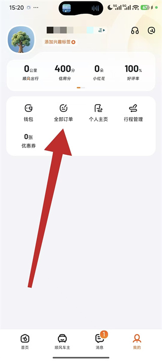 2、在個人中心頁面,點擊全部訂單,進(jìn)入乘車記錄頁面。