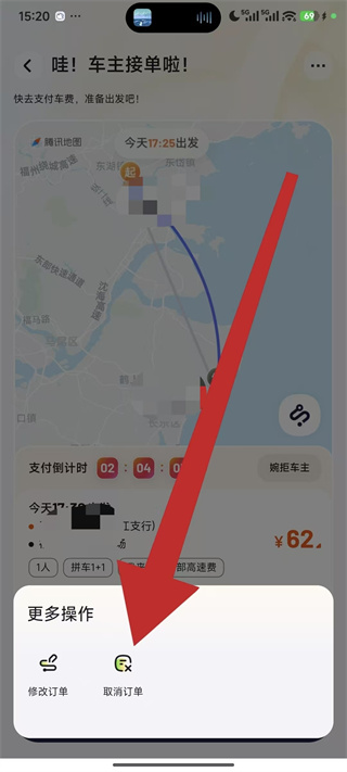5、在彈出的菜單中,選擇取消訂單,即可完成行程取消。