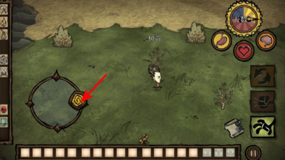 1、在游戲場景中,點擊移動按鈕可操控角色探索地圖,這是收集資源、尋找物資基礎(chǔ)操作,移動遍歷區(qū)域獲取食物、材料。