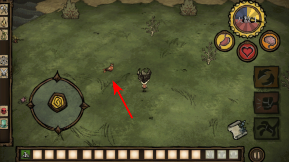 2、探索過程中靠近野生動物如小鳥,可獲取基礎(chǔ)食物資源如種子,這些物資能緩解角色的饑餓狀態(tài),為后續(xù)生存爭取時間。