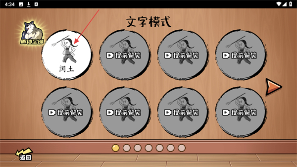 1、在腦洞群英傳三國版的文字模式界面,可選擇已解鎖的閏土卡片進(jìn)入對應(yīng)文字關(guān)卡,其他角色可通過提前解鎖功能開啟。