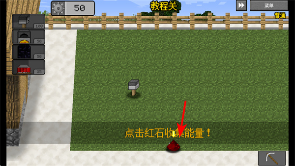 3、在戰(zhàn)場中點擊紅石可收集能量,這些能量是部署、升級器械的關鍵資源,持續(xù)收集能快速擴充防御裝置的數(shù)量,強化對僵尸的火力壓制。