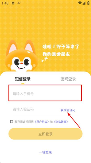 2、在登錄頁(yè)面填寫(xiě)手機(jī)號(hào),勾選協(xié)議后,點(diǎn)擊獲取驗(yàn)證碼。