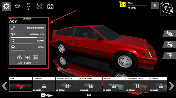 2、選擇車型,查看其參數信息,確認后進入賽道選擇環(huán)節(jié)。