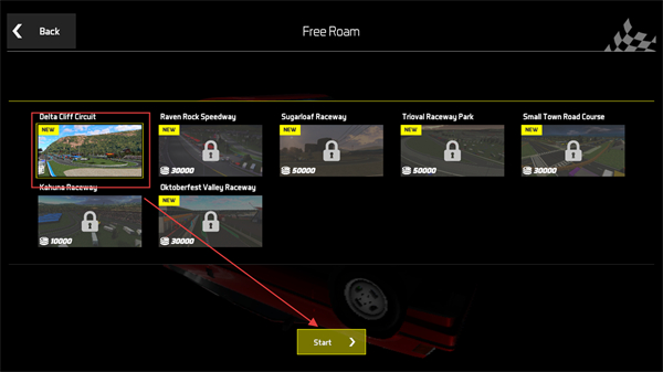 3、在界面選賽道,選擇心儀的試駕賽道,點擊開始自由駕駛。