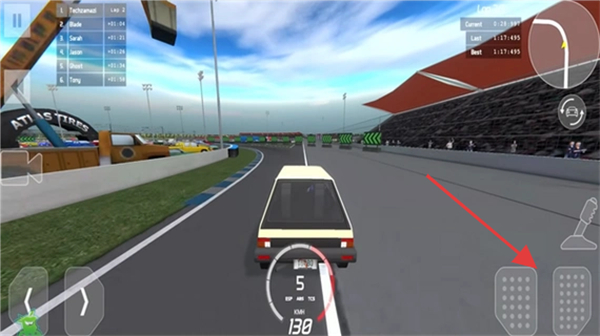 4、在賽道中通過右側按鍵控制車輛加速、剎車,操控行駛完成賽道挑戰(zhàn)。