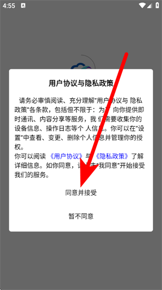 1、打開一易健康,在彈出提示框,點擊同意并接受,進入登錄選擇界面。