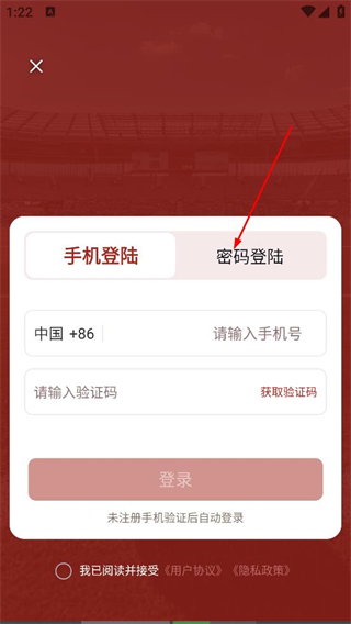 3、在登錄界面,點(diǎn)擊密碼登陸,即可切換至密碼登錄的頁(yè)面。