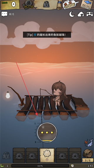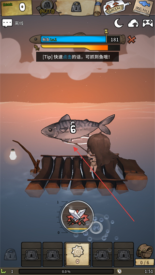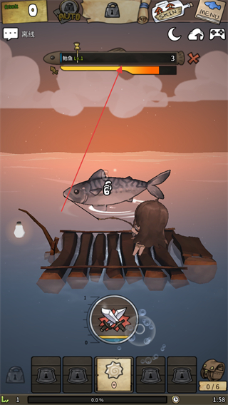 4、持續(xù)操作釣魚,消耗魚的耐力條,完成釣魚流程,積累生存資源。