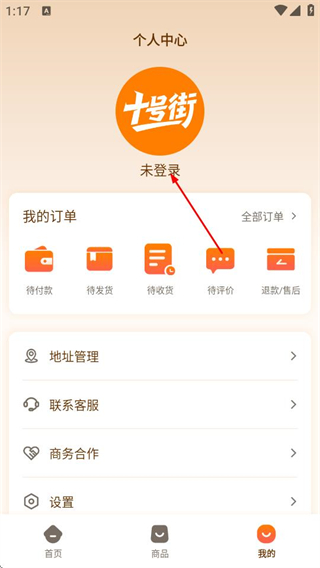 1、在十號街的首頁,點擊底部的我的選項,進入個人中心頁面。