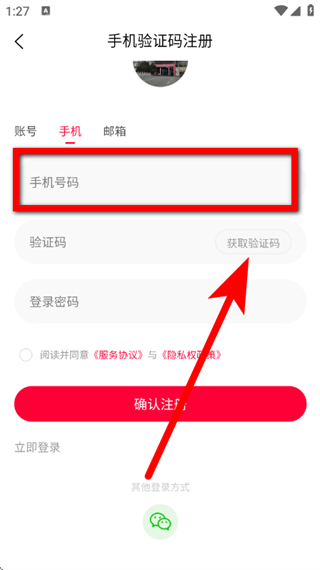 3、在注冊頁面,輸入手機(jī)號,點(diǎn)擊獲取驗(yàn)證碼。