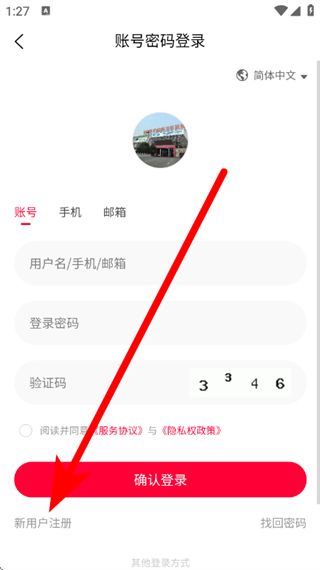 2、在登錄頁面,點(diǎn)擊新用戶注冊,進(jìn)入手機(jī)驗(yàn)證碼注冊頁面。