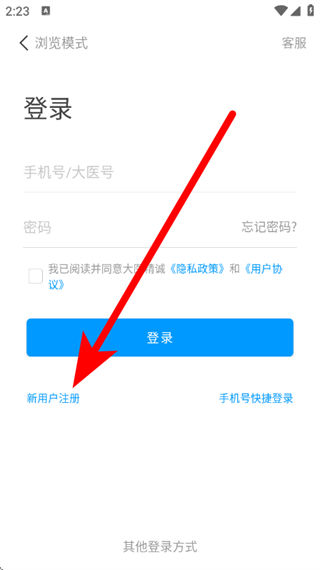 2、在登錄界面,點(diǎn)擊新用戶注冊(cè),進(jìn)入注冊(cè)頁面。