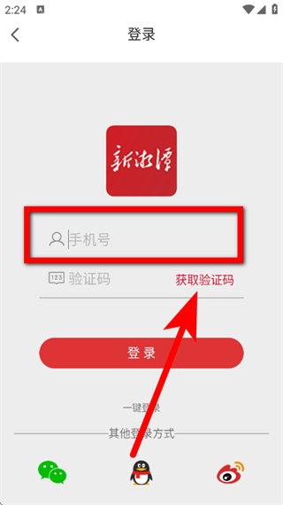3、在登錄頁面,輸入手機號,點擊獲取驗證碼。