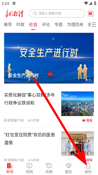 1、打開新湘潭客戶端,點擊底部的我的,進入我的頁面。