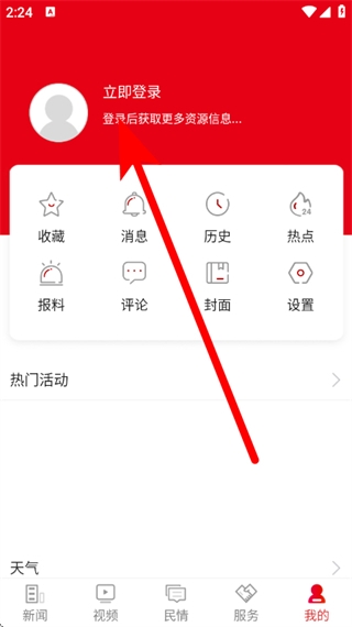 2、在我的頁面,點擊立即登錄,進入登錄頁面。