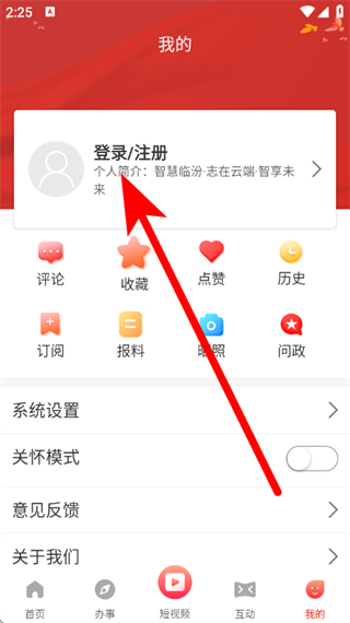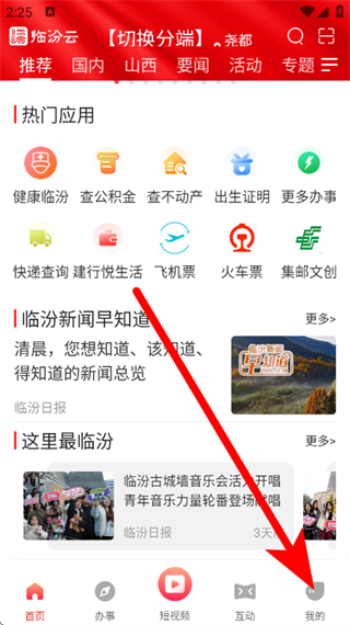 1、打開臨汾云,點(diǎn)擊底部的我的,進(jìn)入個人頁面。