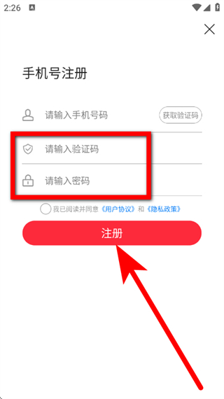 5、輸入驗(yàn)證碼并設(shè)置密碼,勾選協(xié)議后,點(diǎn)擊注冊,完成注冊。