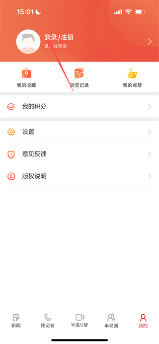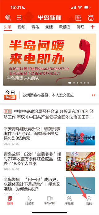1、在半島新聞首頁,點擊底部的我的選項,進(jìn)入個人中心頁面。