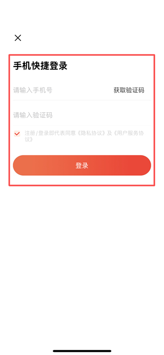 3、在手機(jī)快捷登錄頁面,輸入信息后,點擊登錄完成賬號登錄。