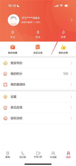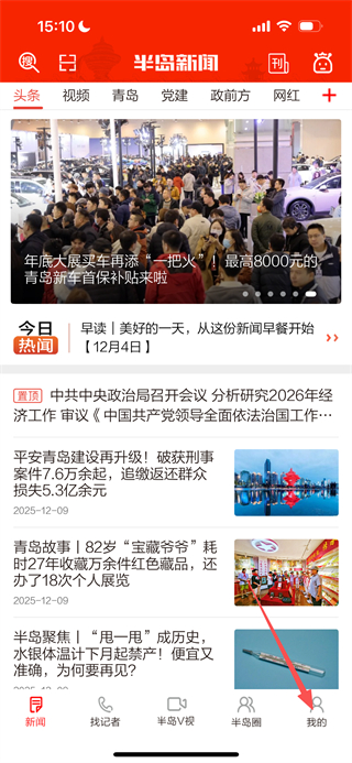 1、在半島新聞首頁,點擊底部的我的選項,進入個人中心頁面。