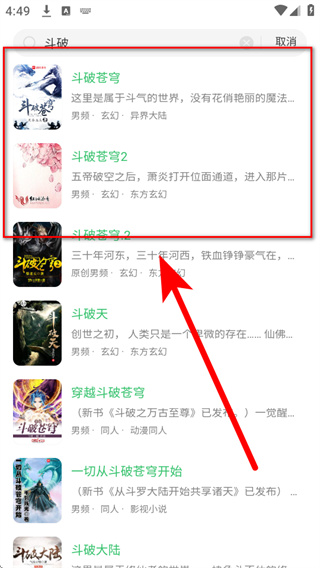 3、在搜索結(jié)果列表里找到目標(biāo)小說(shuō),點(diǎn)擊進(jìn)入該小說(shuō)的詳情頁(yè)面。