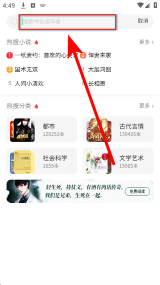 1、打開(kāi)百度小說(shuō),點(diǎn)擊頂部的搜索框,進(jìn)入搜索界面。