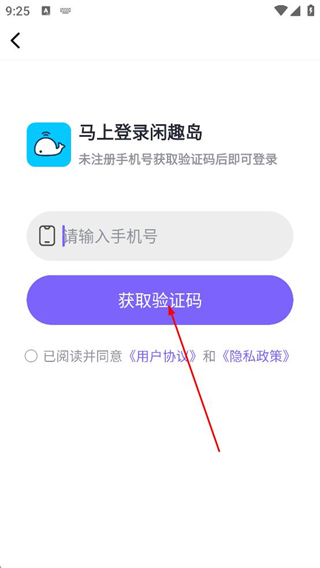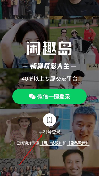 2、在閑趣島主頁(yè)面,點(diǎn)擊手機(jī)號(hào)登錄選項(xiàng),進(jìn)入手機(jī)號(hào)登錄界面。