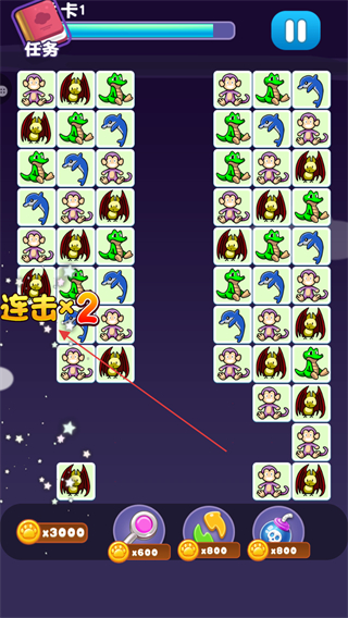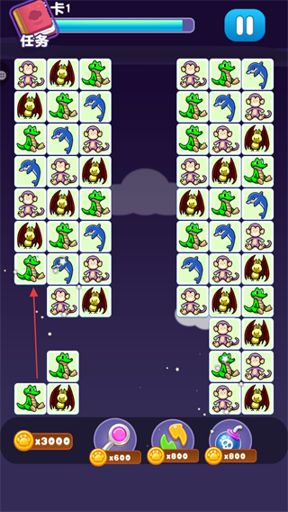 2、繼續(xù)消除相同寵物方塊,讓對應(yīng)方塊下落,推進(jìn)關(guān)卡的消除進(jìn)程。
