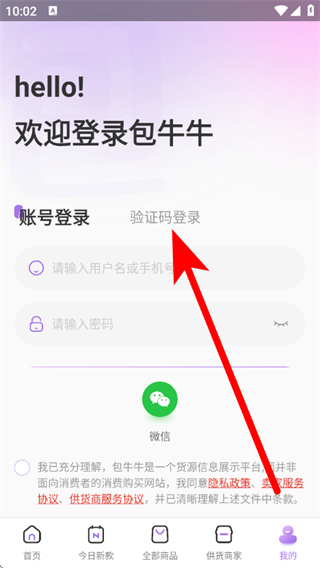 2、在登錄頁(yè)面,點(diǎn)擊驗(yàn)證碼登錄,切換至驗(yàn)證碼登錄界面。