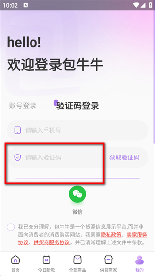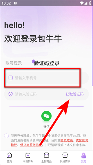 3、在驗(yàn)證碼登錄界面,輸入手機(jī)號(hào),點(diǎn)擊獲取驗(yàn)證碼。