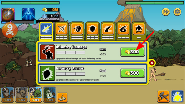 3、在升級界面點(diǎn)擊對應(yīng)的強(qiáng)化選項(xiàng),這是提升戰(zhàn)力的核心操作,強(qiáng)化后可增加兵種的傷害或防御,讓作戰(zhàn)單位在對戰(zhàn)中更具壓制力。